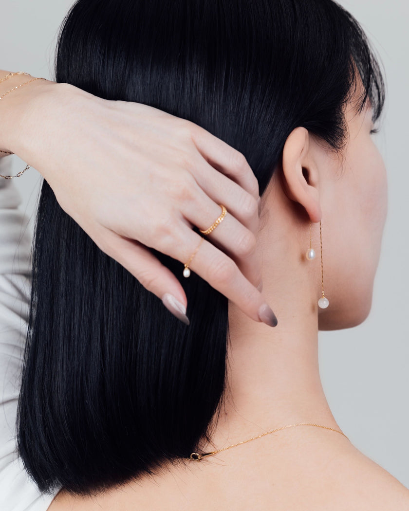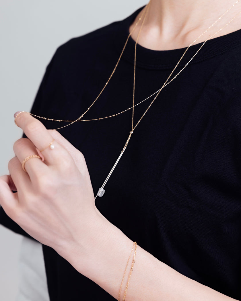 デザイナーは、亡き父が世界中の演奏旅行で出会った天然石を受け継ぎ、ゴールドを基調とした繊細なジュエリーとして息を吹き込む繊細で飽きの来ないデザインは、変わることのない価値を持つクラシック音楽の調べにも似た気品のある作品を生み出している